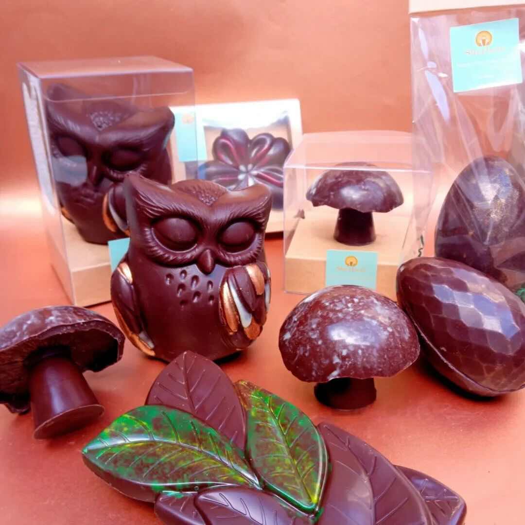 Côté chocolat (que je fabrique d’octobre à Pâques) tous les pralinés et intérieurs sont fabriqués de A à Z. Mon chocolat de couverture est un chocolat mono origine, cultivé, transformé et commercialisé par Xoco, seule entreprise du secteur du cacao à gérer l’ensemble des étapes et à pratiquer la culture à par greffe d’arbre mère, garantissant ainsi des standards élévés en matière sociale et environnementale’